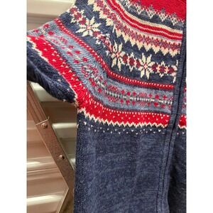 TIARA INTERNATIONAL Women's Red Blue Snowflake Zip Up Cardigan Sweater small