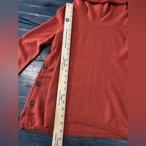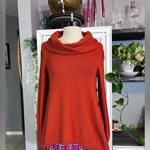 This burnt orange rust colored sweater blouse by CREMIEUX is new with tags and a size small. The long sleeves and stretchy cowl neck make it a cozy option for fall and winter. This versatile piece could also fit a medium size comfortably.
