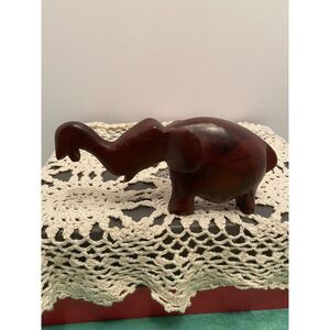Folk Art Elephant Statue Primitive Animal Figurine Brown Hand Carved Dark Wood