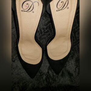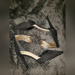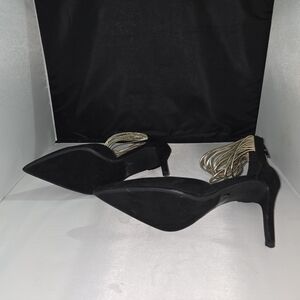 Awesome Heart D Black Heels Stilettos Gold Ankle Straps Pointed-Toe Sz 10M