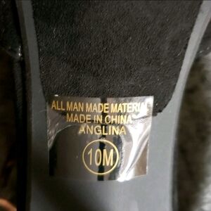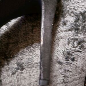 There are a few scuffs marks on the suede and some dried adhesive on the heel which is not very visible. (See photos). There is 1 area of the insole that has a scuffs. (see photo).