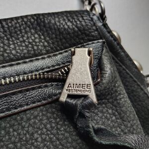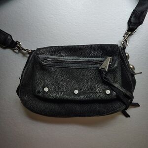 Stylish black crossbody bag. Features silver hardware. Adjustable strap for comfort.