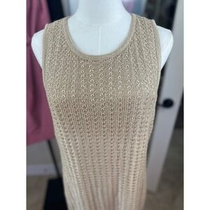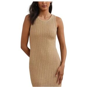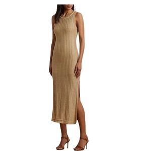Lauren Ralph Lauren NWT SZ XL Gold Knit Sleeveless Maxi Dress Side Slits Ribbed