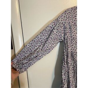Like New Q2 purple floral cottage core grandma core prairie babydoll tiered dress size S but is super oversized could def fit a M maybe even large so see measurements! 100% cotton long sleeve with elastic around wrist. Lightweight and flowy!