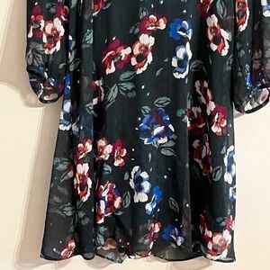 Calvin Klein Dress S Green Floral Mini Sheer Flowy Tropical Boho Western Preppy