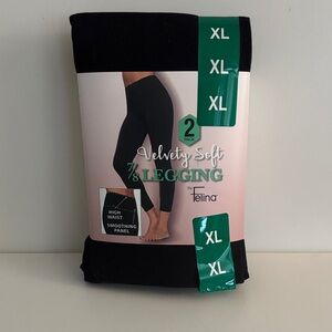 Felina High Waist Black Velvety Soft Leggings - 2 Pack
