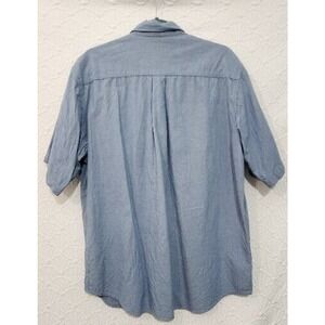 Carhartt Mens Large Blue Loose Fit Short Sleeve Button Up Western Workwear Logo