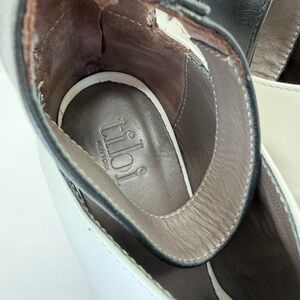 Tibi New York Luxury Abbie Peep Toe Booties Italy Leather Black White Heels 8.5