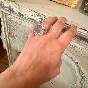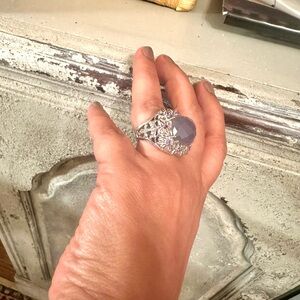 @sirenriot Not sure but almost looks like chalcedony, it’s a gorgeous ring but is bit large on me