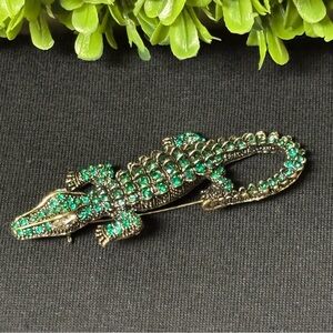 ALLIGATOR CROCODILE BROOCH GREEN CRYSTAL GLASS RHINESTONE GOLDTONE METAL