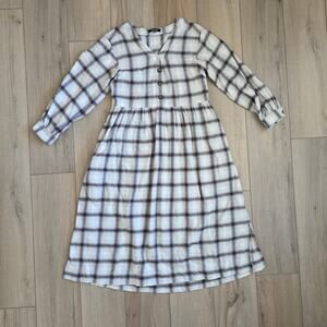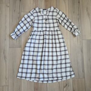 Madewell Flannel Button-Front Midi Dress Blue/Cream Women Sz 00