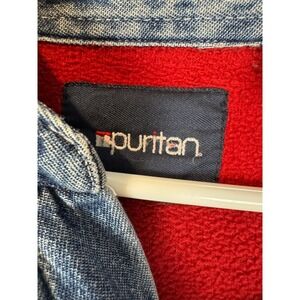 Vtg Puritan Mens Flannel Lined Denim Shirt Jacket Dark Wash Button Up Size 2XL