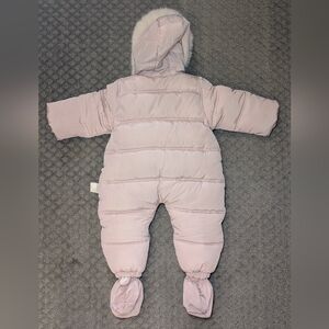 Pink Quilted Puffer Hooded Eskimo Baby Snowsuit Fleece Lined with Booties 90cm