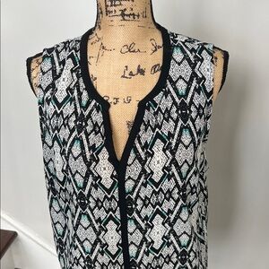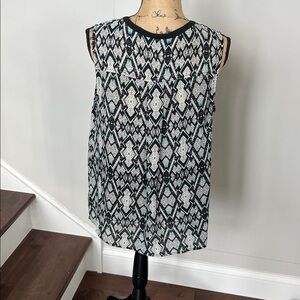 Chic sleeveless blouse with bold geometric design. Perfect for versatile styling. Flowy. The tag says X/Tg but it fits like a XL.