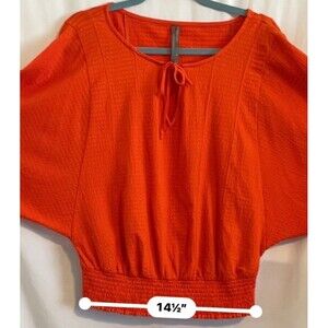 Anthropologie Shirt Doleman Sleeve Smocked Cuffs & Waist Orange Women’s Size M