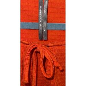 Gorgeous Anthropologie pull over with a tie at the neck. Brilliant orange with small cuffs and waist. Roomy and comfortable in a womans size medium. Excellent preowned condition.