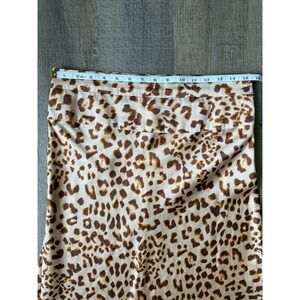 Free People Normani Bias Midi Skirt Womens Sz 12 Beige Leopard Satin Slip A-Line