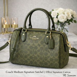 ‼️SOLD‼️Coach Medium Rowan Satchel Bag & Mini Chain Wallet Black Cherry Print