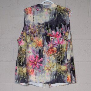 Colorful Floral Sleeveless Women's Top Size 3X, Artsy, Wearable Art