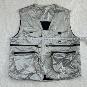 Zara Silver Utility Vest – Multi-Pocket Reflective Finish Techwear Vibe