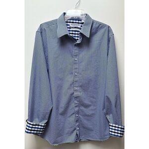 Nick Graham blue & white plaid men’s stretch modern fit flip cuff button up shirt, size XL TG