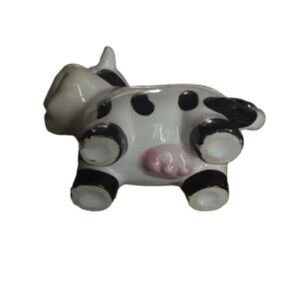 Cute cow-shaped ceramic creamer with black and white spots. Think outside the box this little creamer can be used as a planter a brush holder or anything you imagine it to be farm core farmhouse country. This is a vintage piece and as such may have signs of age overall excellent condition no chips.