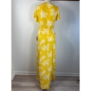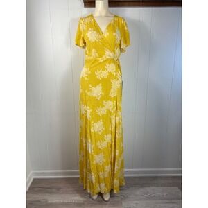 Lulus Yellow Floral Wrap Maxi Dress Short Flutter Sleeve Tie Waist M