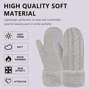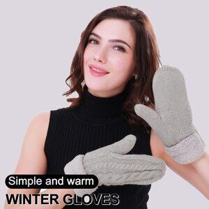 Women's Gray White Winter Warm Imported Fleece Lining Wool Knit Thick Gloves