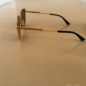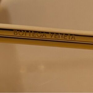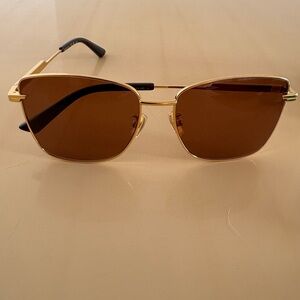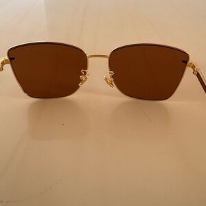 Bottega Veneta sunglasses gold frames and brown lenses. Rectangular shape aviator with shiny gold details. Subtle Logo on both temples. Unworn, comes with signature BV hard case, original packaging and authentication cards.