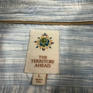 The Territory Ahead Seersucker Shirt Mens Large Blue White Long Sleeve Cotton
