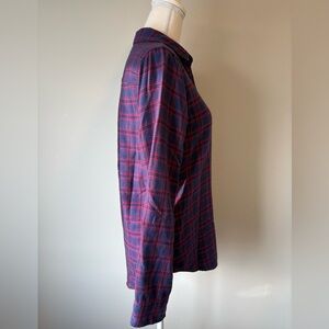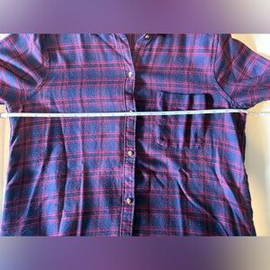 Hollister flannel, Hollister boyfriend fit, women’s plaid shirt, purple red flannel, soft viscose flannel, Hollister button down, XS flannel top, casual plaid shirt, women’s long sleeve flannel, cozy fall shirt, lightweight flannel, oversized style flannel, Hollister plaid top