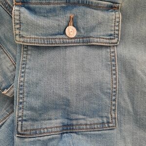 This popular style features a relaxed, slouchy fit and dramatic wide leg opening. There are 2 back pockets, 2 front hip pockets, and 2 cargo pockets on the thigh. The material is 57% cotton, 18% lyocell, 12%, recycled cotton, 11% and 2% elastine. 15" waist 29" inseam