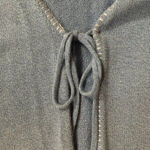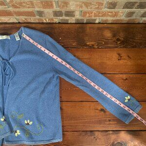 Lord & Taylor Blue Floral Embroidered Women's Large Tie Front Knit Cardigan EUC