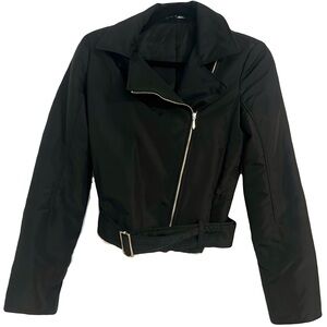 Although tagged a size Medium, this jacket runs small, particularly in the shoulders and arms. Best for someone with a narrower frame or who prefers a very fitted silhouette. See sizing chart in photos.