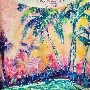 Excellent pre-owned condition. Lightweight tee with beach and tropical fish scenes. Rhinestone studs on the bodice only.