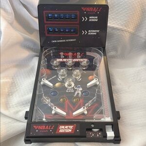 The lights dont work but paddles etc do. May just need some tlc from the right person. Sold as is. If you cna get it working…Experience the thrill of classic arcade gaming with the Pinball Arcade Galactic Edition. Featuring a sleek black design, this console offers both manual and automatic scoring for endless fun.
