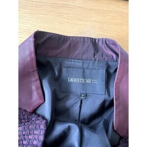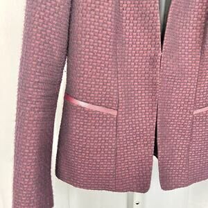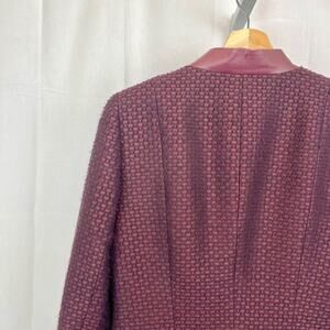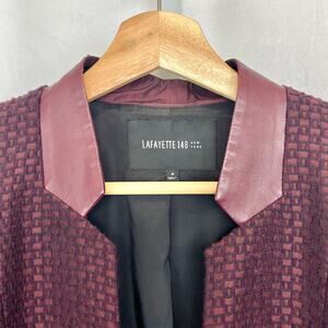 LAFAYETTE 148 Tweed Jacket Blazer Jacket Wool blend Leather Trim Wine Red Size 4