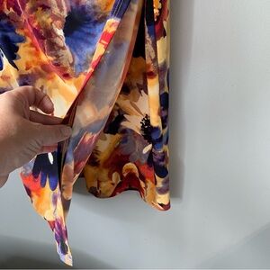 Lauren Ralph Lauren multi fall floral surplice ruched dress with slit. Size 12