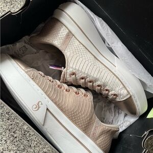 NWT size 8.5 Women’s Sketchers. Snoop One - Velvet Snoop. Color is taupe with metallic on the toes.