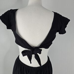 Jason Wu Open Back Linen Blend Tiered Hem Midi Sundress Black Flutter Sleeve L