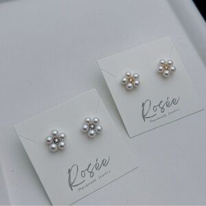 โจ E345 S925 High Quality Freshwater Pearl Flower Stud Earrings โ 5mm โจ