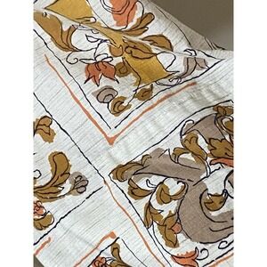 Vintage 50s Day Dress Sz L Gold Cream Letters Rockabilly Retro Feminine