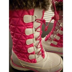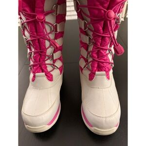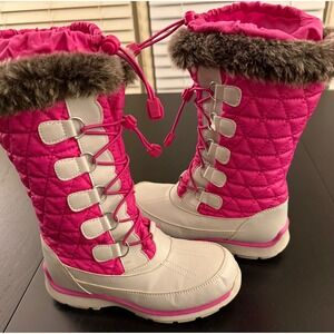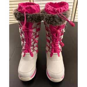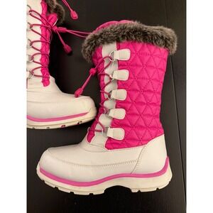 Lands' End Girls Insulated Tall Snow Winter Boots Size 3 Gray/Pink Waterproof