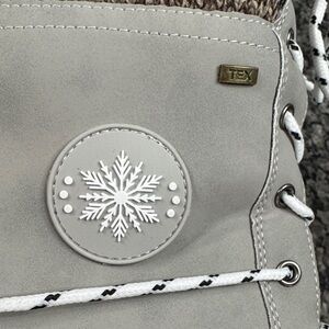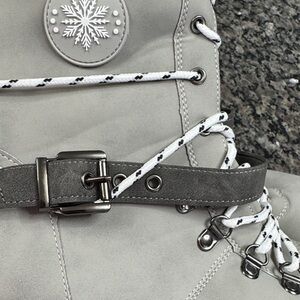 Worn one time very comfortable just too big. normally wear a 10. warm and stylish with these gray winter boots featuring a cozy knit cuff. Perfect for cold weather, these boots offer both comfort and durability.