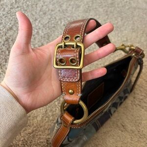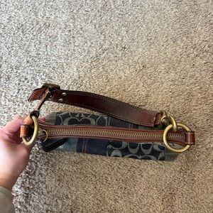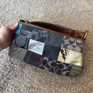 Vintage Coach Denim & Leather Blue Patchwork Pochette Shoulder Hobo Purse