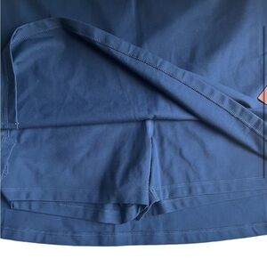 A sporty exercise skirt with built-in compressive shorts and side slits for easy moving.