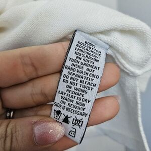 Bob Mackie Vintage 'Wearable Art' knit top. Ivory with floral embroidery on front and bell sleeves.