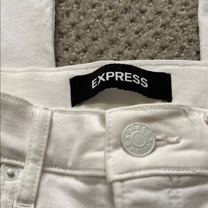 These Express white skinny jeans provide a sleek fit with a soft denim texture, ensuring both style and comfort. Perfect for any occasion, they are a versatile addition to any wardrobe.