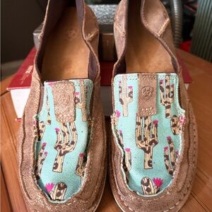 Ariat Brown Leather moccasin/ slipped with Cactus Deaign women’s size 8.5 exc!