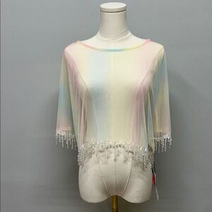 Cider Tie Dye Sheer Mesh Poncho Crystal Fringe Hem Size XL Pastel Shawl Eras